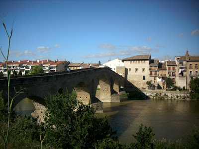 After the half hour break with the group and the cherry pits, we all set out at different paces. Sabina and I began to drudge--to drudge I tell you. We drudged and trudged up and down, in and out, over and through. And after hours... and hours... and hours of thinking one town was Puente la Reina and then the next--it must be the next, it must--we finally pulled into the narrow streets of our destination... only to discover that the albergue we had chosen (rumors of a pool were in circulation) was on the far side of town, over the bridge, and up the most sadistic hill in existence. I suppose they wanted to offer their guests arresting views of the city and the countryside. This guest, however, only wanted a bed and maybe some juice and a shower. My legs were numb, my body ready to just shut the freak down when thankthelord... we made it.